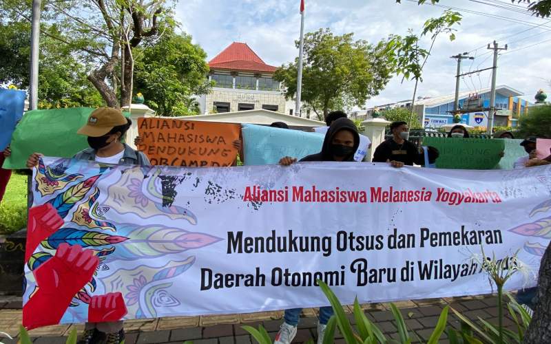 Sebagai bentuk dukungan rencana pemekaran Daerah Otonom Baru (DOB) di wilayah Papua, puluhan massa yang tergabung dalam Aliansi Mahasiswa Melanesia Yogyakarta (AMMY) menggelar aksi di Kantor DPRD Kota Jogja.