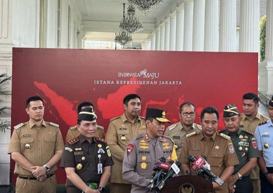 Presiden Joko Widodo atau Jokowi menggelar rapat bersama jajaran Forkopimda Sulawesi Selatan (Sulsel) di Istana Kepreisdenan, Jakarta, Selasa (27/2/2024).