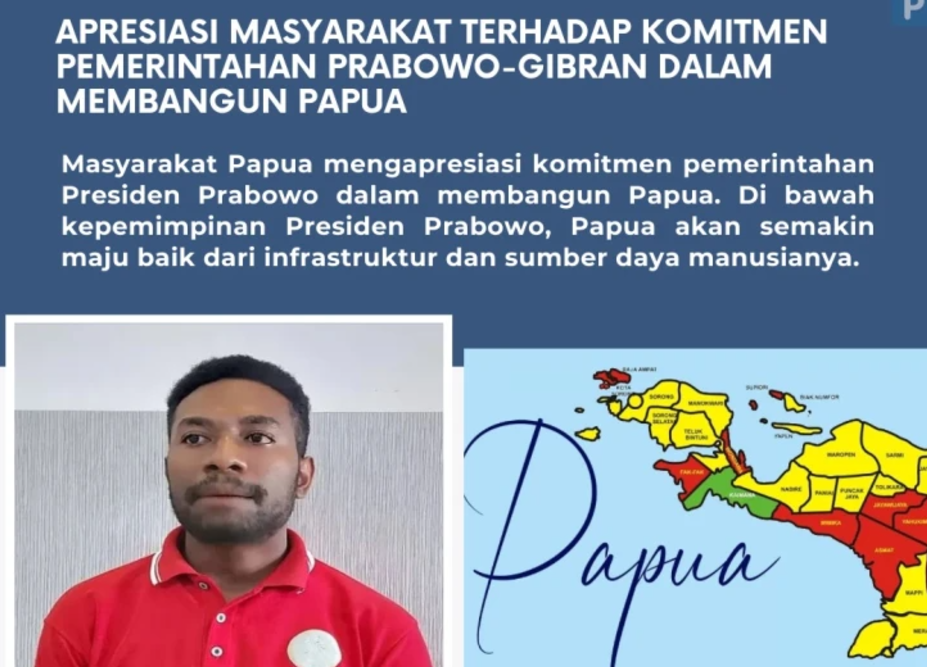 Komitmen Presiden Prabowo Subianto dalam membangun Papua terus mendapat apresiasi dari berbagai kalangan. Salah satunya datang dari Absalom Kreway Yarisetouw, Ketua Generasi Garuda Sakti Indonesia Provinsi Papua. Menurutnya, kunjungan perdana Presiden Prabowo ke Merauke, Papua Selatan, beberapa waktu lalu adalah bukti nyata keseriusan Pemerintah dalam memajukan wilayah Papua.