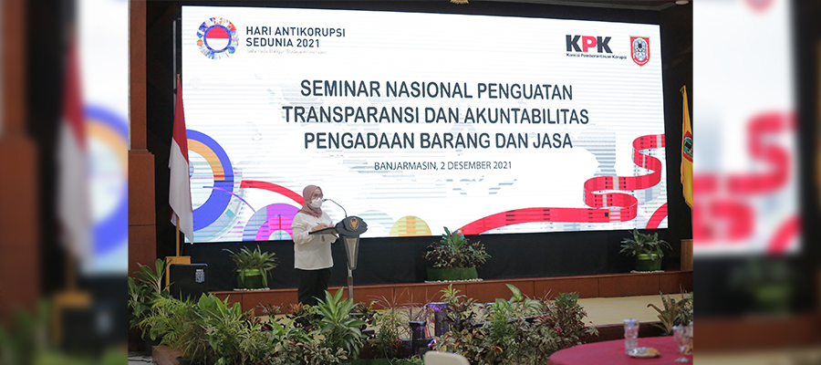 Demikian disampaikannya dalam Seminar Nasional bertema ”Penguatan Transparansi Dan Akuntabilitas Pengadaan Barang dan Jasa”, Kamis, 2 Desember 2021 di Gedung Mahligai Pancasila, Banjarmasin, Kalimantan Selatan (Kalsel) yang merupakan rangkaian kegiatan Hari Antikorupsi Sedunia (Hakordia) 2021.