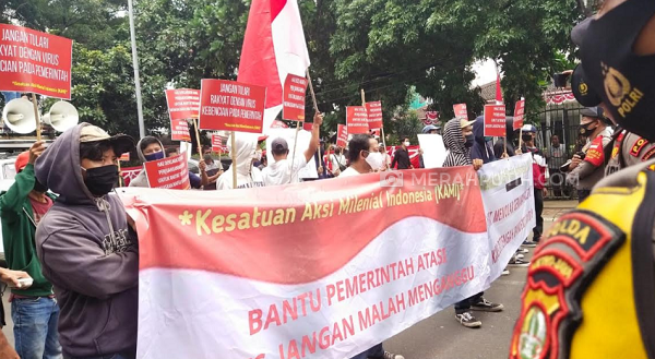 Terbukti, ratusan massa dari berbagai elemen di Kota Surabaya melakukan aksi penolakan deklarasi KAMI Jatim yang semula akan digelar di Gedung Juang 45 di Jl Mayjend Sungkono, Surabaya pada Senin, 28 September 2020 lalu.