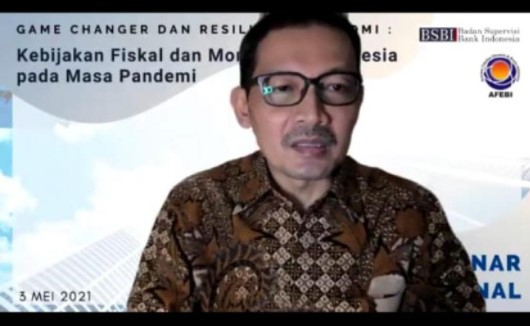 “Kebijakan sudah diambil supaya ekonomi lebih tangguh,” ujar Edhie dalam Seminar Nasional secara virtual “Game Changer dan Resiliensi Ekonomi: Kebijakan Fiskal dan Moneter di Indonesia pada Masa Pandemi” yang diselenggarakan Asosiasi Fakultas Ekonomi & Bisnis Indonesia (AFEBI) dan Badan Supervisi Bank Indonesia (BSBI), Senin (3/5).