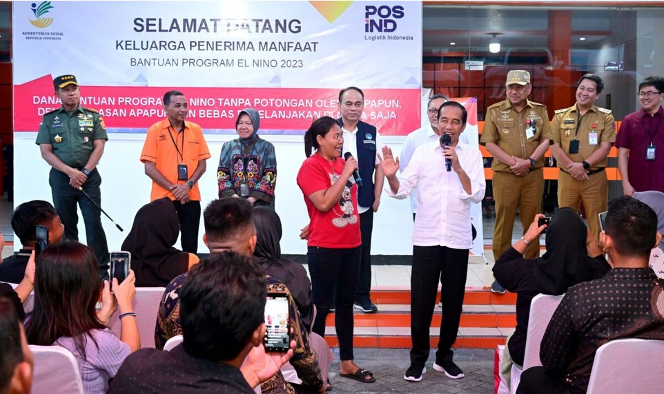 Kepala Negara pun menyampaikan bahwa dirinya telah memastikan penyaluran BLT El Nino melalui kantor pos maupun bank, semuanya telah berjalan dengan lancar.