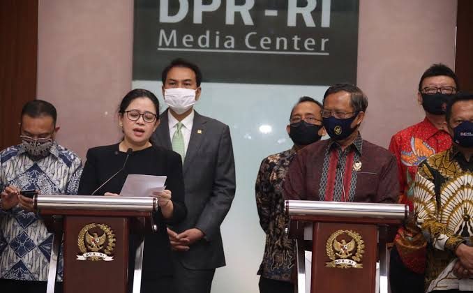 Di DPR, utusan pemerintah diterima oleh Ketua DPR RI Puan Maharani, bersama Wakil Ketua DPR lainnya, Aziz Syamsuddin, Rachmad Gobel dan Dufmi Dasco Ahmad. Mantan Pimpinan MK tersebut datang membawa tiga dokumen untuk diserahkan pada pimpinan DPR.