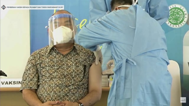 Program vaksinasi di Daerah Istimewa Yogyakarta (DIY) dimulai hari ini, Kamis (14/1). Orang yang kali pertama disuntik vaksin corona Sinovac di DIY adalah Wakil Gubernur DIY Kanjeng Gusti Pangeran Adipati Aryo (KGPAA) Paku Alam X adalah orang pertama yang disuntik vaksin.
